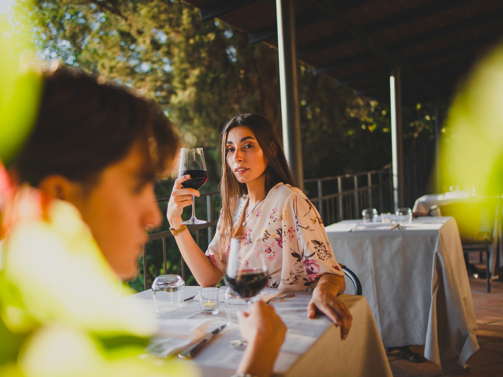The restaurant, since 2022 under the same management as the hotel, has been built in the cellars of the old Enoteca. It is the ideal place to discover the secrets and flavours of Tuscan cuisine and good wine. The outdoor terrace with a view of the centuries-old cypresses and hills creates an enchanting atmosphere.